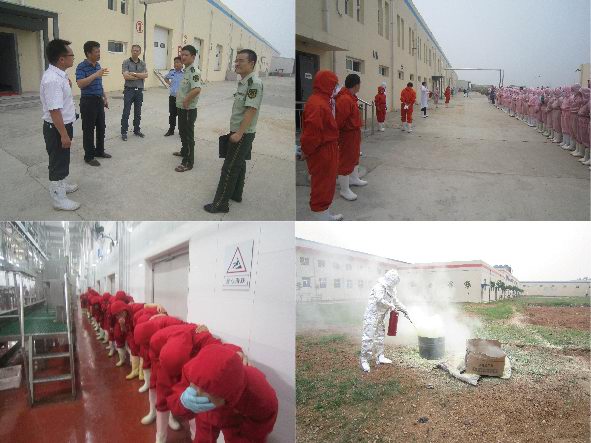 吉林德惠寶源豐禽業(yè)發(fā)生特大事故,造成120人遇難,在全國安全月伊始之時發(fā)生如此重大事故,教訓(xùn)慘痛。為吸取這一慘痛的經(jīng)驗(yàn)教訓(xùn),落實(shí)于董事長關(guān)于安全整頓的要求,進(jìn)一步增強(qiáng)員工安全意識和自我救助能力,公司于2013年6月7日在各分廠車間、制冷機(jī)房和廠區(qū)空地三處演習(xí)地點(diǎn)舉行了緊急疏散、液氨泄漏緊急處置和消防滅火的實(shí)戰(zhàn)演練。