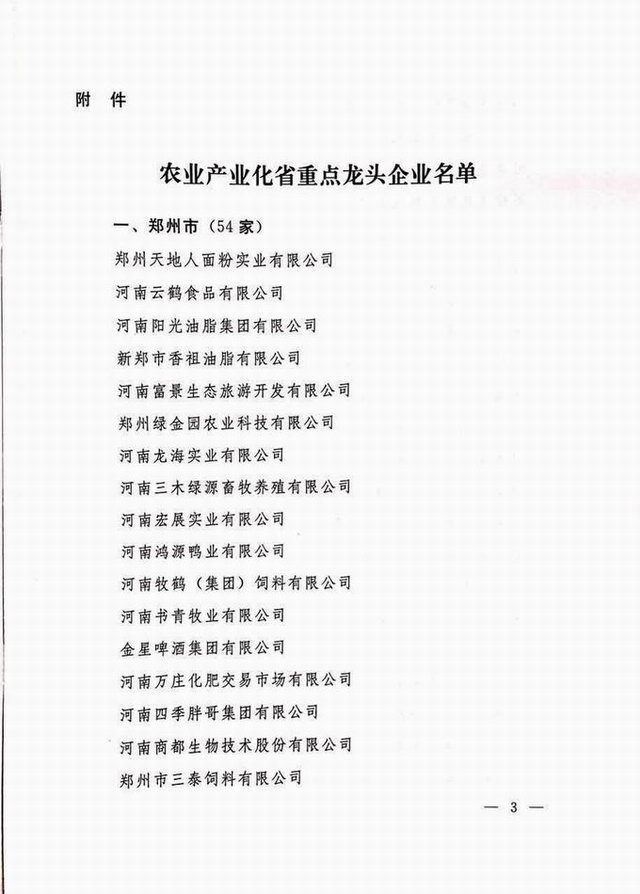 農(nóng)業(yè)產(chǎn)業(yè)化省重點(diǎn)龍頭企業(yè)2016.10.24 發(fā)布時(shí)間:2020-01-15來源:洛陽正大食品有限公司點(diǎn)擊:11965